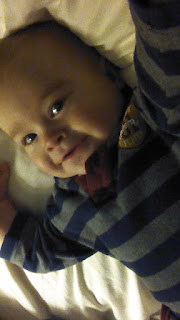 In other NEWS. Owen is MOBILE. He can and does go EVERYWHERE, army crawl style. He is LOVING his new freedom.
